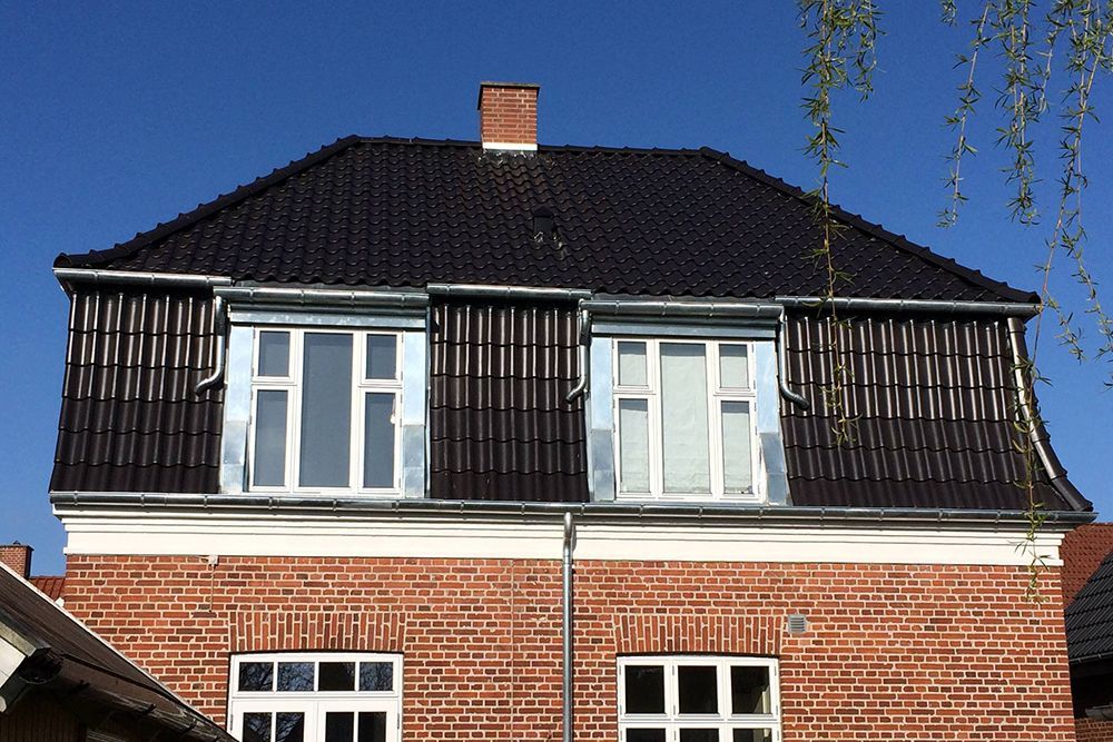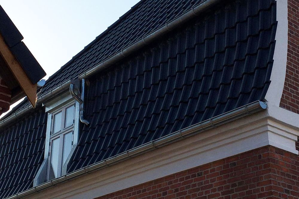 Vi har her udskiftet et gammelt manzard-tag og monteret de populære sorte tegl. Et virkelig flot resultat.