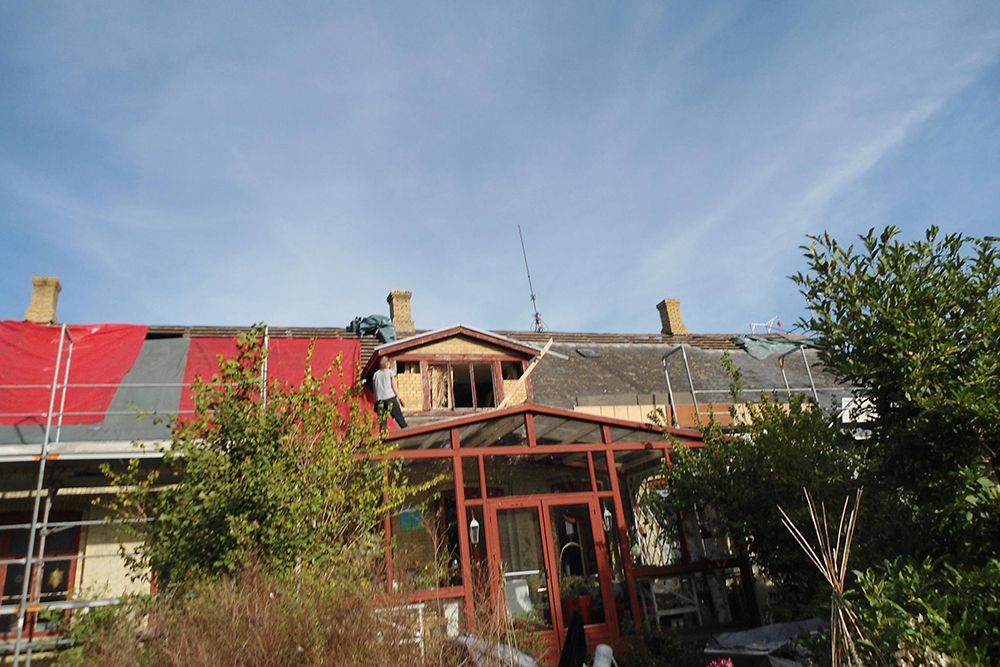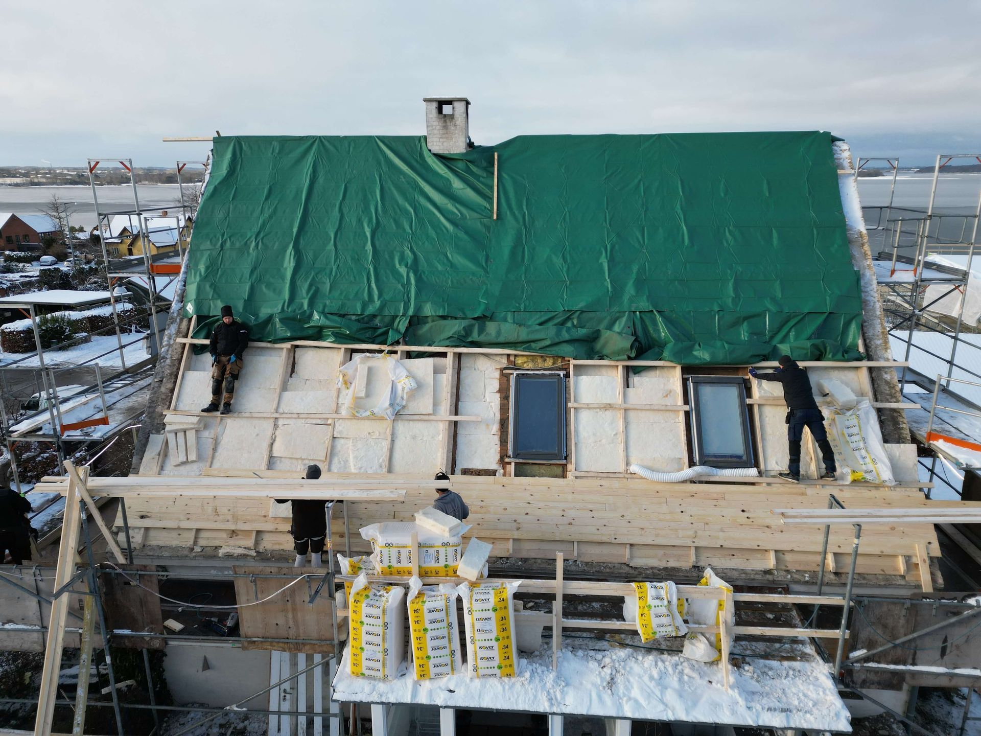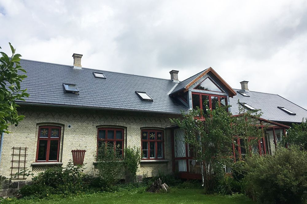Her har vi udskiftet tag og forstærket spær, samt bygget ny karnap. Tagmaterialet er udført i naturskiffer.